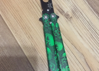 Нож бабочка тренировочная Цвет: зелёный череп Крутой нож бабочка для тренировок в хорошем состоянии.
