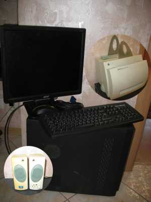 Компьютер комплектность: системный блок, монитор, лазерный принтер, клавиатура, колонки, беспроводная мышь, все шнуры и...
