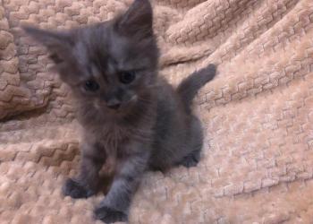 Котик пушистый. Примерно 2 месяца. Ест хорошо, игривый. Лоток приучен. В добрые руки.
